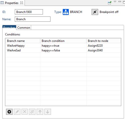 After adding a branch node to your process, make sure the node is connected (using the connection tool) to previous nodes. That way, all your variables will be available. Then, click on the branch node and add conditions. You can add many conditions, and you can use variables and/or javascript code to create the comparisons.