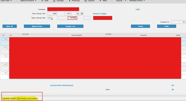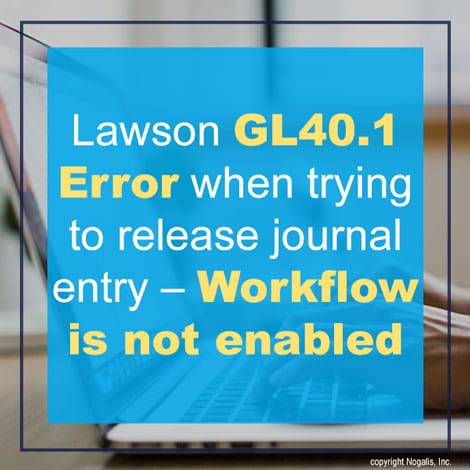 Lawson GL40.1 Error when trying to release journal entry – Workflow is not enabled