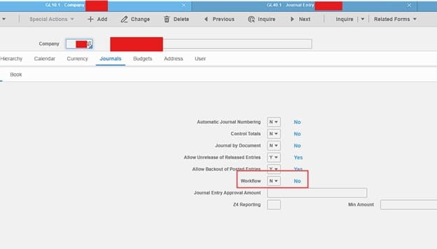 You’re trying to release a Journal Entry on GL40.1 but getting a “Workflow is not enabled” error (see example screenshot below):