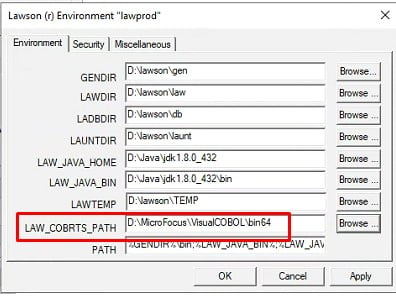 After a fresh install of Lawson, you may receive a “file not found” error in LID when adding a batch job. Or, inquiring on certain forms might time out. The batch job itself may show an error message alluding to the LUU utilities (such as invalid fstab option). The issue is potentially an incorrect LAW_COBRTS_PATH.