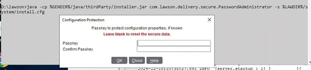 Then type in the command java -cp %GENDIR%/java/thirdParty/installer.jar com.lawson.delivery.secure.PasswordAdministrator -s %LAWDIR%/system/install.cfg