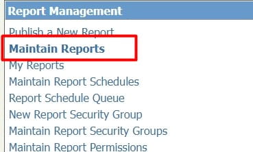 Click “Save and Exit” and then go to “Maintain Reports” in the Reporting Services Administration Report Management Menu.