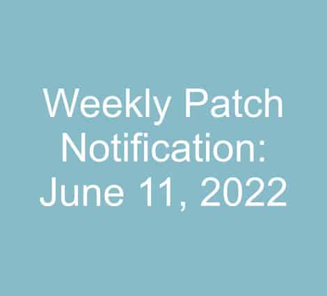 Angeli Menta2022-06-11 18:28:032022-07-20 13:36:09Weekly Patch Notification: June 11, 2022