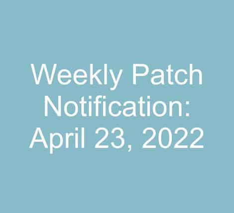 Angeli Menta2022-04-23 19:49:552022-05-10 13:57:19Weekly Patch Notification: April 23, 2022Events