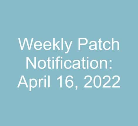Angeli Menta2022-04-16 20:13:132022-05-06 14:15:02Weekly Patch Notification: April 16, 2022