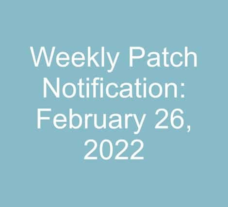 Angeli Menta2022-02-26 19:35:132022-03-11 10:37:24Weekly Patch Notification: February 26, 2022