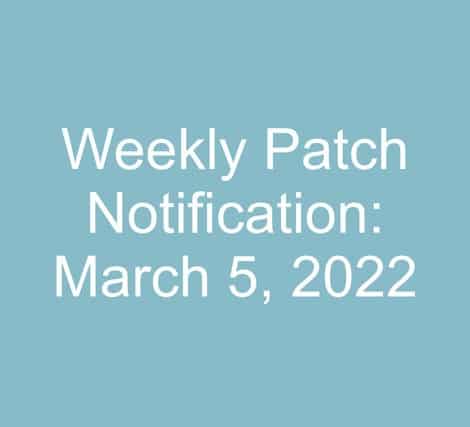 Angeli Menta2022-03-05 17:05:222022-04-07 17:13:17Weekly Patch Notification: March 5, 2022
