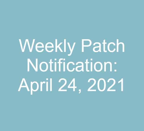 Angeli Menta2021-04-24 18:08:452021-05-01 17:10:55Weekly Patch Notification: April 24, 2021Events
