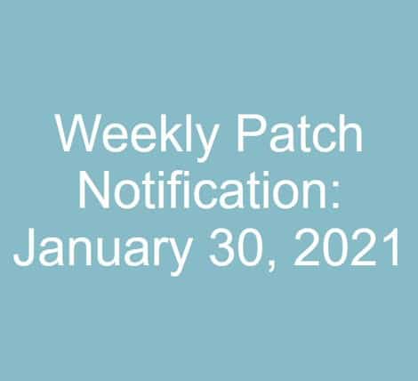 Angeli Menta2021-01-30 19:19:492021-02-06 14:23:04Weekly Patch Notification: January 30, 2021Events