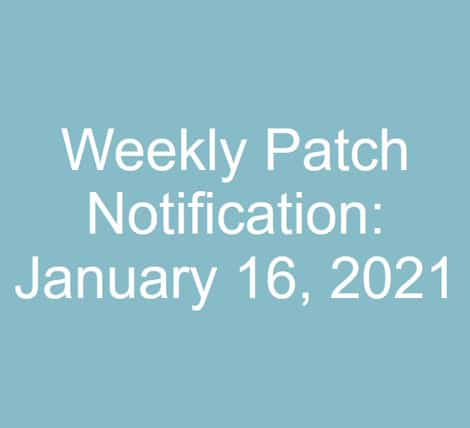 Angeli Menta2021-01-16 19:08:252021-02-06 14:19:06Weekly Patch Notification: January 16, 2021