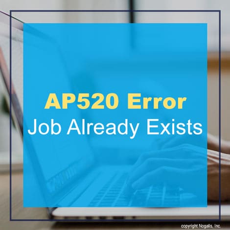 Articles, Frontpage Article, NewsIf your AP520 job goes into recovery with invalid parameters, and the examine log contains the error message “AP520 conflict, job already exists”, that means either an AP520 is already in recovery, or you will need to delete the conflicting…