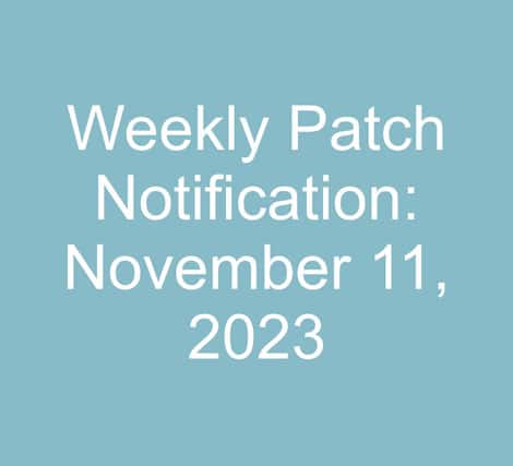 Angeli Menta2023-11-11 18:45:062023-12-04 16:46:53Weekly Patch Notification: November 11, 2023