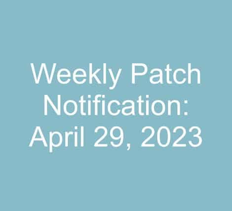 Angeli Menta2023-04-29 19:34:362023-05-04 16:36:35Weekly Patch Notification: April 29, 2023