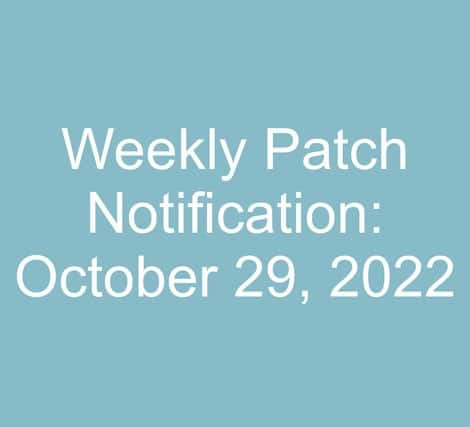 Angeli Menta2022-10-29 19:01:292022-11-04 15:03:30Weekly Patch Notification: October 29, 2022