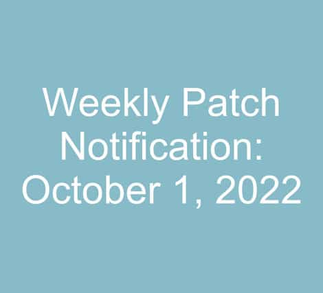 Angeli Menta2022-10-01 18:44:142022-11-04 14:55:42Weekly Patch Notification: October 1, 2022
