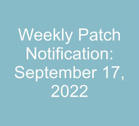Angeli Menta2022-09-17 18:39:112022-10-17 16:40:49Weekly Patch Notification: September 17, 2022