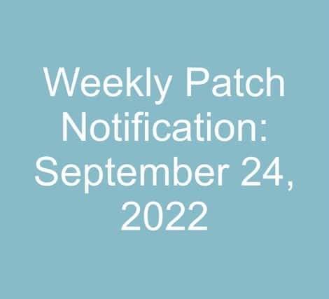 Angeli Menta2022-09-24 18:47:522022-10-17 16:49:36Weekly Patch Notification: September 24, 2022